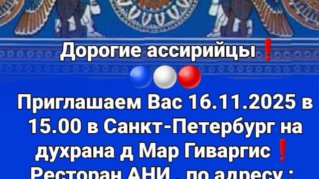 Дорогие ассирийцы❗Диаспора Санкт-Петербурга приглашает на духрана д Мар Гиваргис 16.11.2025.🎊🙌🙏❤