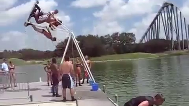 Шикарный и сумасшедший прыжок в воду.