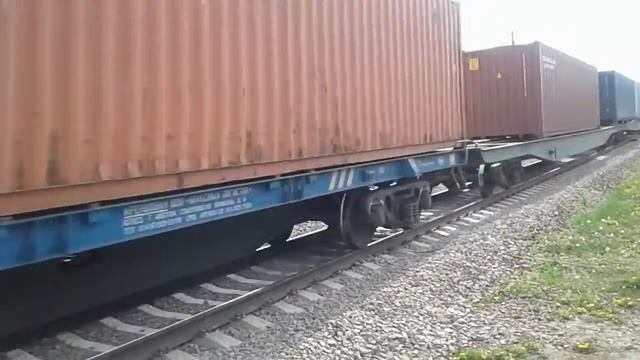 Электропоезд ЭД4М-0032, а также электровоз ВЛ10У-687 с контейнерами на платформах