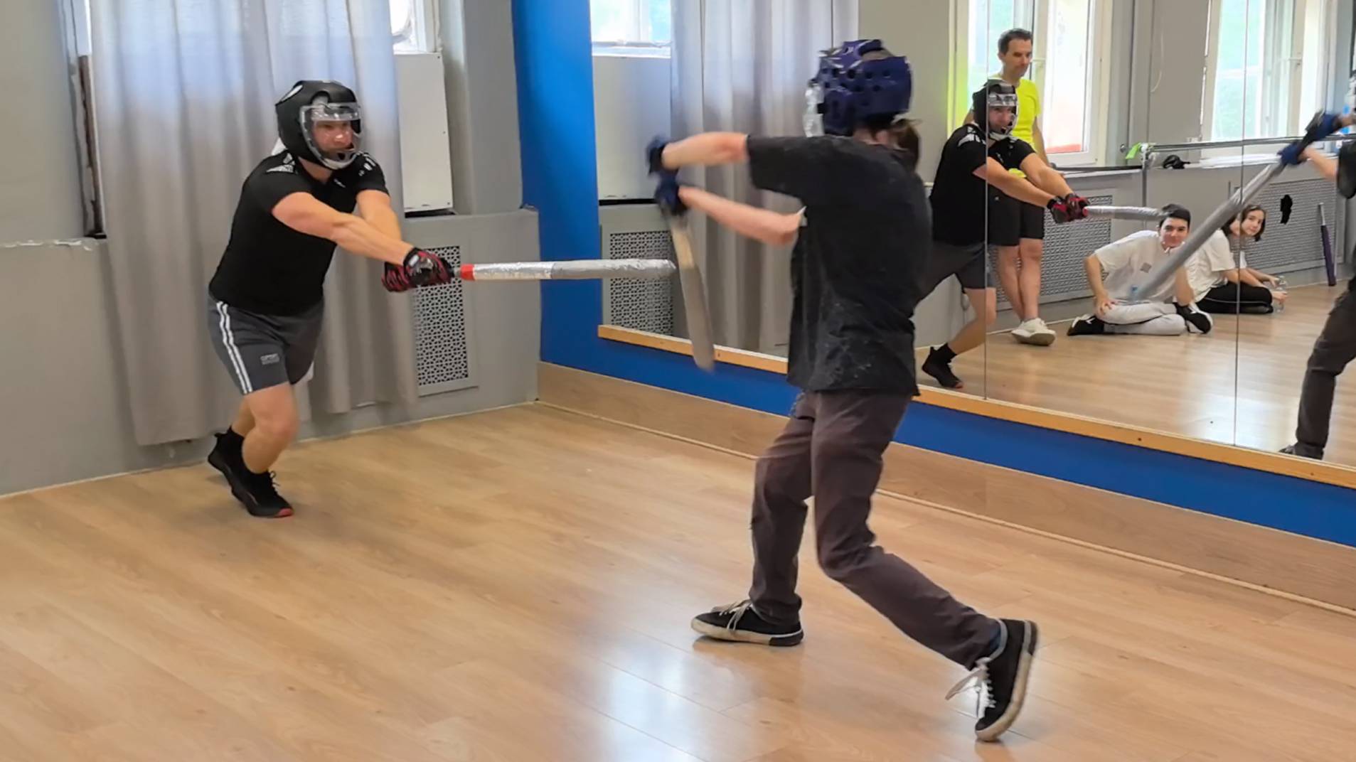 Спарринг на длинных двуручных мечах чанбара катана в школе японского фехтования Katana Club
