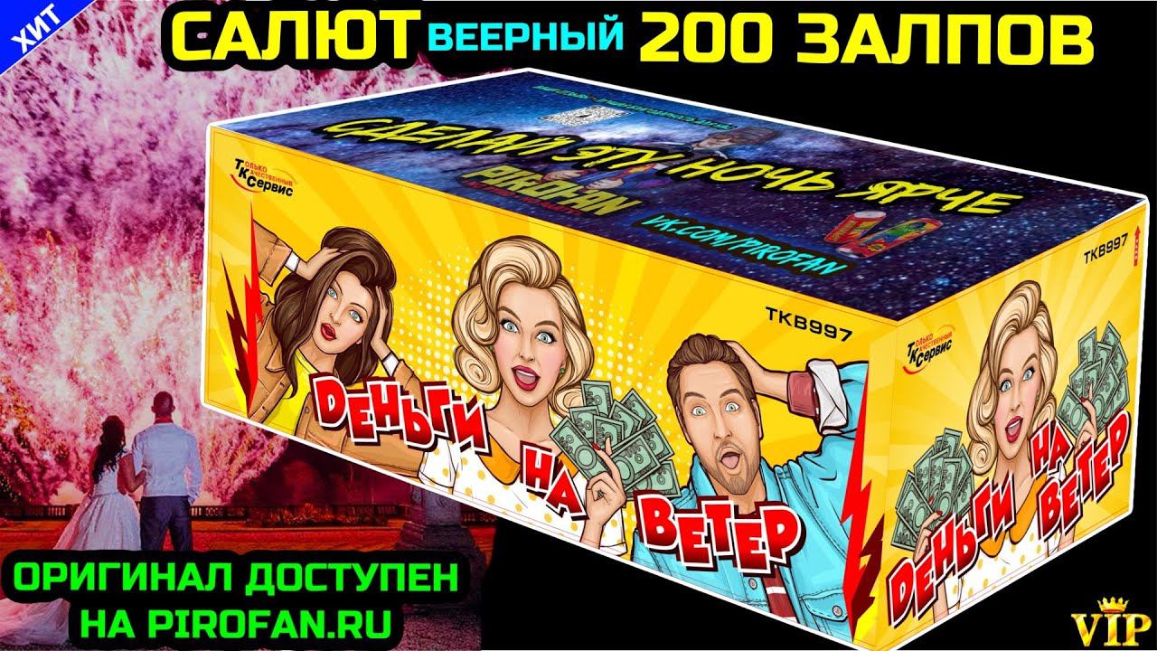 HTTPS://PIROFAN.RU - скидки в нашем официальный магазине TKB997 Салют 200 залпов средних, фейерверк Деньги на ветер (веерный) - Калибр: 20мм = 0,8" дюйма - Время действия: 145 секунд - Высота выстрела: 25 метров - Есть сертификат и гарантия от ПироФан
