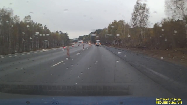 Трасса "Екатеринбург-Челябинск". Не менее 40 автомобилей пострадали от действий дорожных рабочих, ремонтировавших трассу. По сообщениям очевидцев, спецавтомобиль ехал по обочине навстречу потоку, со включенным распылением гудрона.