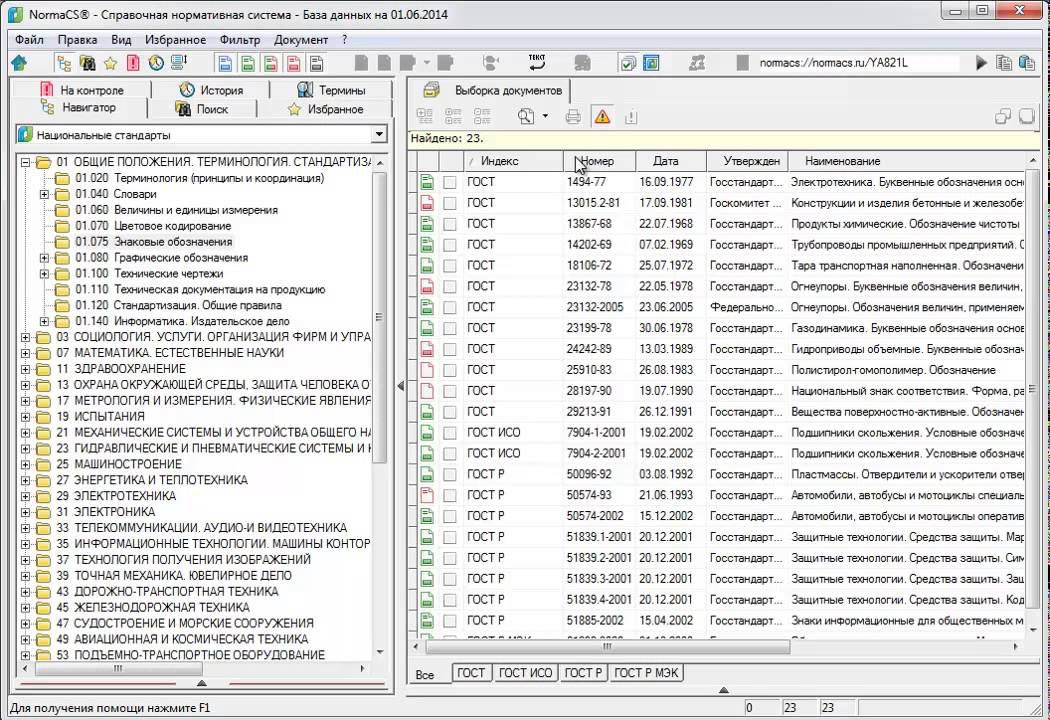 Статусная панель. Порядковый номер документа в списке, сколько строк на экране, сколько строк всего в списке. Сборники в навигаторе и поиске. Фильтрация по индексу. Фильтрация по статусу. Сортировка по номеру документа, дате его утверждения, названию и т.п. Многоуровневая сортировка. Настройка параметров сортировки. Печать и копирование списка документов. Подробнее о NormaCS: http://normacs.ru/desc.jsp Информационный портал: http://normacs.info