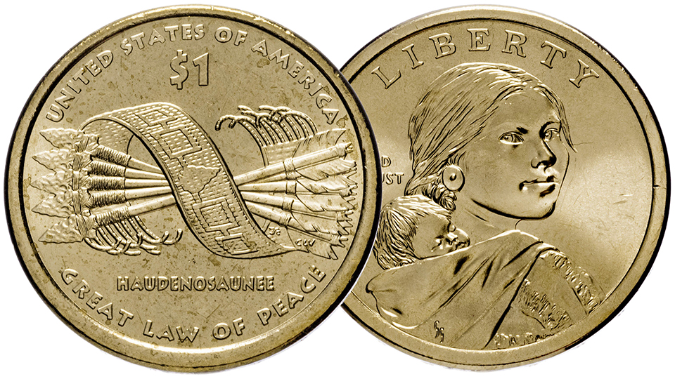 Монета 1$ Пояс Гайавата. Серия Крренные Американцы.