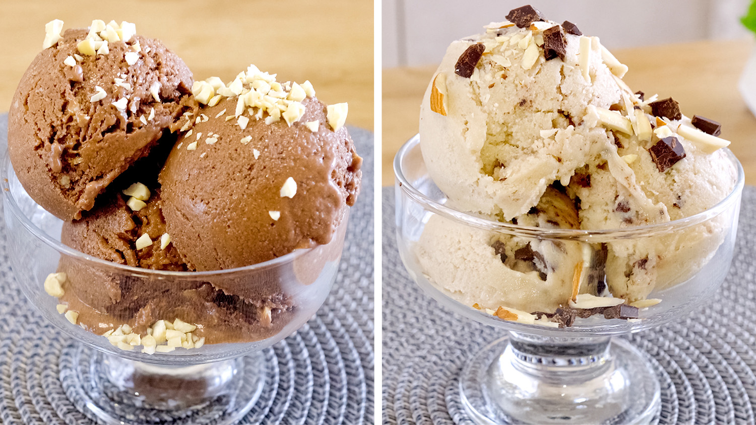 Шоколадное мороженое: Орех кешью (15 шт) залить водой и оставить на 10 минут. Вода ? (100 мл). Финики (4 шт). Какао (2 ст л) + ванилин (1/4 ч л). Замороженные бананы ? (500 г). Орех кешью (15 г) оставить для украшения. Поставить в морозильную камеру на 3-4 часа. Ванильное мороженое: Миндальный орех (20 шт) залить горячей водой и оставить на 15 минут. Вода ?(100 мл). Финики (3 шт) + ванилин ( 1/2 ч л). Замороженные бананы ? (500 г). Добавляйте постепенно. Чорний шоколад ? (40 г). Поставить в морозильную камеру на 3-4 часа. Украсить шоколадом и орехами. Надеюсь вам понравится это мороженое ? напишите мне в комментариях. Желаю вам приятного аппетита ?. #шоколадноемороженое #мороженое #десерт #каксделатьмороженое #новыйрецептмороженого