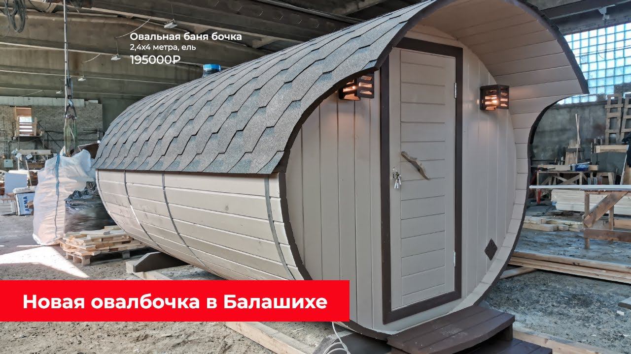 Самая популярная модель сезона 2020 — четырёхметровая овальная баня бочка на 2 отсека: предбанник и парная. Небольшой размер бани позволяет её сделать очень комфортной и в полной комплектации, при этом держать цену на приемлемом уровне. Конкретно эта баня стоит 195000 рублей, не считая доставки на участок. Характеристики: Размер ....................................... 2,4х4 м Площадь ................................... 9,6 кв.м Материал .................................. бочковая доска из ели Парная ...................................... 8 куб.м Цвет .......................................... Тиккурила Tikkurila Pika-Teho оттенок TVT 559 X Кровля ..................................... Технониколь SHINGLAS коричневая Печь .......................................... печь: «Кузбасс Оптима» 9 ТКУ ТЕПЛОДАР Рассматривайте баню бочку скорее как финскую сауну, а не замену ванной комнате. В такой бане парятся, а не плещутся =) Проект → https://baniglushakova.ru/katalog/ovalnye/obrazec-18-08-2020/ Баня в наличии и выставлена на продажу на площадке «Балашиха» по адресу: ул. Орджоникидзе, 24, Балашиха (Москва). Пожалуйста, заранее сообщите о визите менеджеру Вадиму Березину по телефону +7 (925) 103-00-71