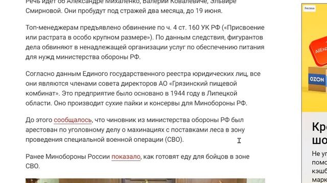 Арестованы поставщиков сухих пайков в ВС РФ за растра