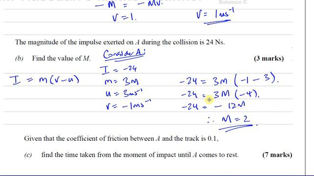 [2] AS/A2 (IAL) Mechanics (M1) Solomon C, Q7, Momentum & Impulse, Friction, suvat