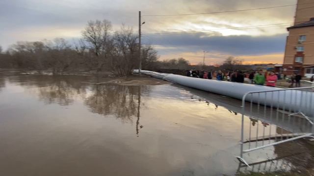 Водоналивная дамба сдерживает воду в Оренбурге