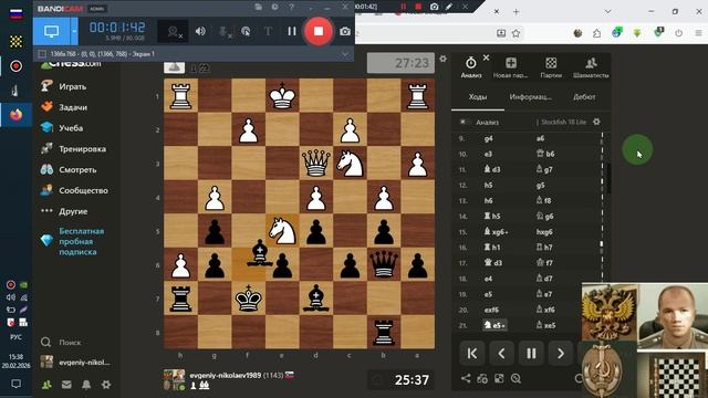 Шахматы ЧессКом Н-Е-В 2026-02-20 Три ОнЛайн (Ладьей под слона -случайный клик)