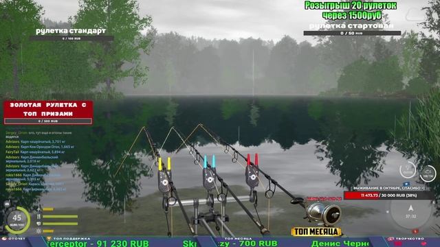 Поддержка донатом https://www.donationalerts.com/r/kalyamba11 Альтернативный донат https://new.donatepay.ru/@1032463 Если стрим лагает,смотри стрим на трово https://trovo.live/s/Kalyamba_na_Ribalke ТОП 1 ДОНАТЕР МЕСЯЦА поддерживающий трансляции получит подарок в виде катушки TAIGA c40 2s Мой ВК - https://vk.com/kalyantv НИК в игре kalyan11 НАШ ДИСКОРД СЕРВЕР https://discord.gg/mSbnTJK8TB Заказ водоема на 1 час - 500р ( весь стрим 2500р ) Модерка на канале 1100р ( каждая следующая на 100р больше) Озвучка доната на 40р,50р,100р,200р,300р,500р,1000р ✅Призы в рулетке "ПРЕМИУМНАЯ" ✔ ЗОЛОТО ✔ ПРЕМ ✔ КАТУШКИ РАПТОР 40, АЗИМУТ 10000, СИЛЬВЕР 80, ТАЙГА с 30 ЮБИЛЕЙНАЯ, ✔ ПАЛКИ ПИЛКЕРНАЯ, ДОНКА МОРСКИЕ, ТОП КАСТИНГ ✔ РОД ПОД, СТУЛЬЯ ✅Призы в рулетке СТАНДАРТ : ✔ катушка "РАПТОР 40" ✔ катушка "АЗИМУТ 10000" ✔ катушка "ТАЙГА С30, С40, С30 (юбилейная)" ✔ катушки 60 для медного ( ЭВИИ, НАТОРЫ, ГОЛДА, и тд) ✔ ПИЛКЕРНОЕ УДИЛИЩЕ КОРОЛЕВА ОКЕАНА ✔ Тяжелый кастинговый спиннинг "Барракуда" ✔ Морское Донное удилище ✔ прем ( 3, 7, 30 дней) ✔ золото ( 1, 3, 5, 10, 20 ,50) ✔ билет на море ( 1, 3, 5 дней) ✔ голд наживка и др. ✅Призы в рулетке "СТАРТОВАЯ" ✔ катушка "silver80" ✔ катушка "БЕЛЫЙ КАЛИБР" ✔ катушка "Черный калибр" ✔ катушка "Протон" ✔ катушка "Нарга 6000" ✔ Набор Фидерист и спинингист ✔ Карповик Фортуна ✔ фидерные удилища ✔ прем, золото, алкашка, наживки и тд P.s Рулетка это не казино, а награда за поддержку стримера. Вечный ТОП ПОДДЕРЖКИ (11.05.2024) 1. Dimon_pokemonchik 119 784 2. Interceptor 75 508 3.Skreb79 71 261 4. une personne 68 619 5. Нарвал77 31 550