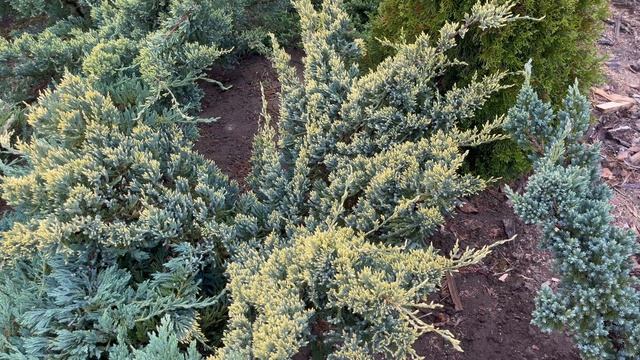 Компактные, с красивым ярким приростом можжевельники Дрим Джой и Голд Тип.