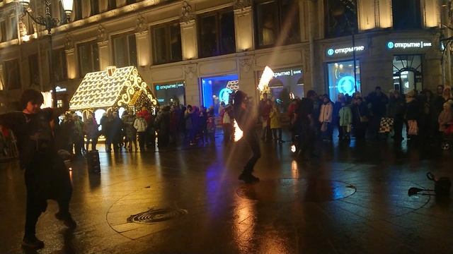огненное шоу на улицах Санкт-Петербурга