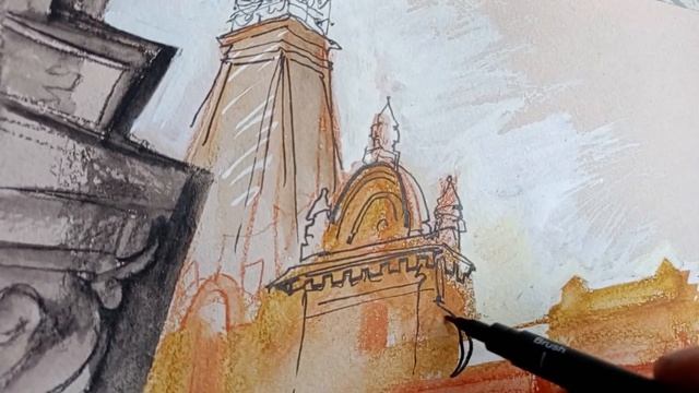 Городская зарисовка. Акварельные карандаши, брашпен, белила. Незаконченный эскиз Иркутск, 06.05.2024 #urbansketching #watercolourpencil #brushpen