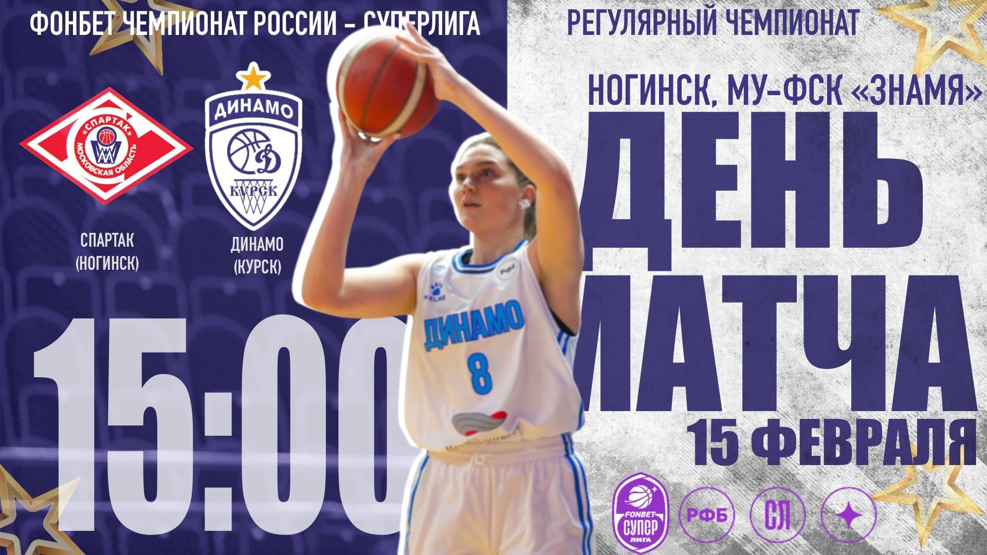 15.02.2024 15:00 Спартак (Ногинск) - Динамо-Фарм (Курск) Фонбет Чемпионат России - Суперлига, Регулярный чемпионат Арена: Ногинск, МУ-ФСК "Знамя" Статистика: https://russiabasket.ru/games/775103?apiUrl=https://org.infobasket.su&lang=ru