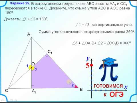 В остроугольном треугольнике АВС высоты АА₁ и СС₁ пересекаются в точке О. Докажите, что сумма углов АВС и АОС равна 180⁰.