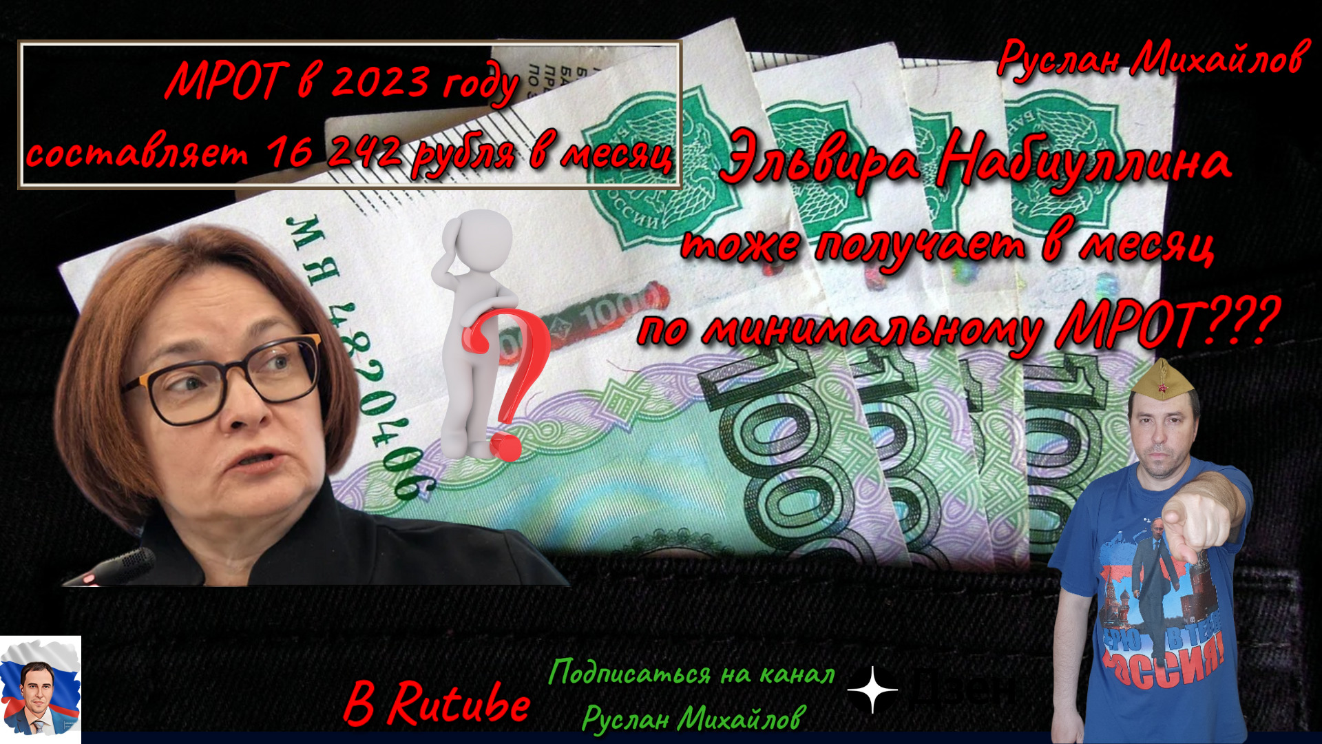 Руслан Михайлов политобозреватель сказал свое личное мнение. Эльвира Набиуллина тоже получает в месяц по минимальному МРОТ? С 1 января вступил в силу закон, устанавливающий минимальный размер оплаты труда в 2023 году в сумме 16 242 рубля в месяц. Минимальный размер оплаты труда вырос на 6,3 %. Глава ЦБ РФ Эльвира Набиуллина по своей должности должна следить по устойчивости рубля в России. Ставим лайки, подписываемся на канал Поддержка канала ЮMoney 4100117815002119 карта сбер банк 2202202311864023 подписывайтесь на мои каналы на вк vk.com/id558285967 группа на вк vk.com/club202827331 мой телеграмм канал https://t.me/ruslnmikhailov мой дзен канал https://dzen.ru/video/watch/6491a1398cde1a113725a5c4 рутуб канал https://rutube.ru/channel/30740209/ #РусланМихайлов#Эльвиранабиуллина#цбрф#рутуб #rutube #рутубканал#видео#экономика