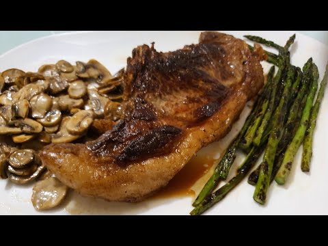 состав: соль ,перец, масло оливковое ,стейк, спаржа,шампиньоны.