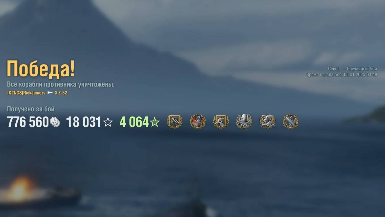 Эсминец Z-52: +203к урона 6 фрагов на карте Север - World of Warships