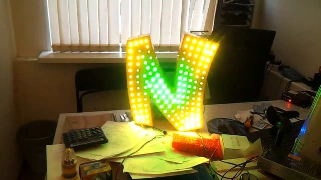 Рекламная вывеска с установленными пикселями RGB 0850 IC2801. Тестовый образец.