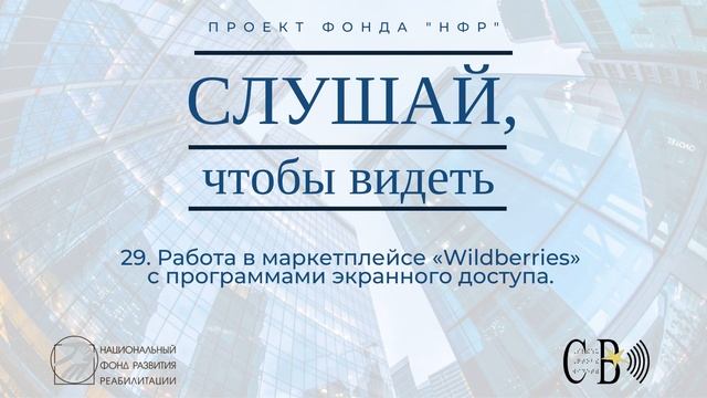 Это 29-й эпизод подкаста «Слушай, чтобы видеть», который создан для незрячих пользователей электронных сервисов. Выпуск посвящен обзору маркетплейса «Wildberries». Василий Дрожжин описывает основной функционал и демонстрирует работу сервиса на примере приложения для пользователей устройств на платформе iOS. Информационно-просветительские подкасты рассчитаны на аудиторию незрячих пользователей электронной техники. Проект реализует «Национальный фонд развития реабилитации». Ссылка на приложение «Wildberries» в магазине App Store: https://apps.apple.com/ru/app/wildberries/id597880187