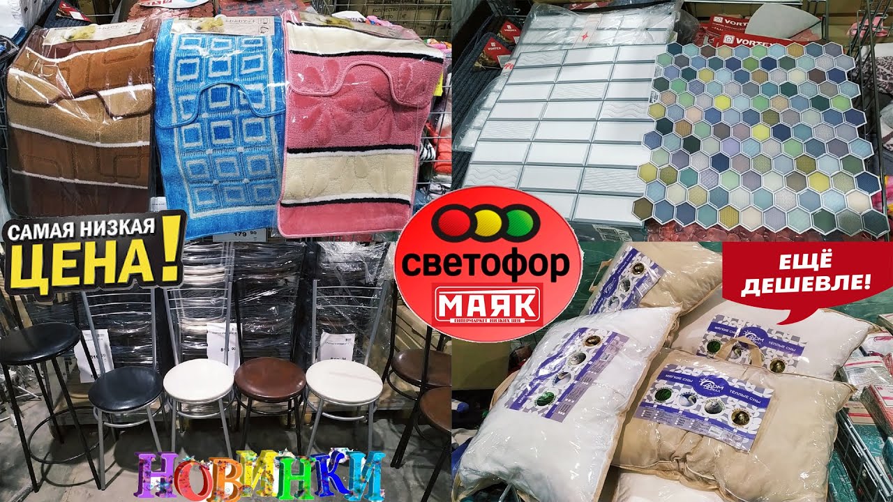 Обзор магазин низких цен Маяк-это большой Светофор. Стулья, ковры, панели из пвх, подушки и одеяла.