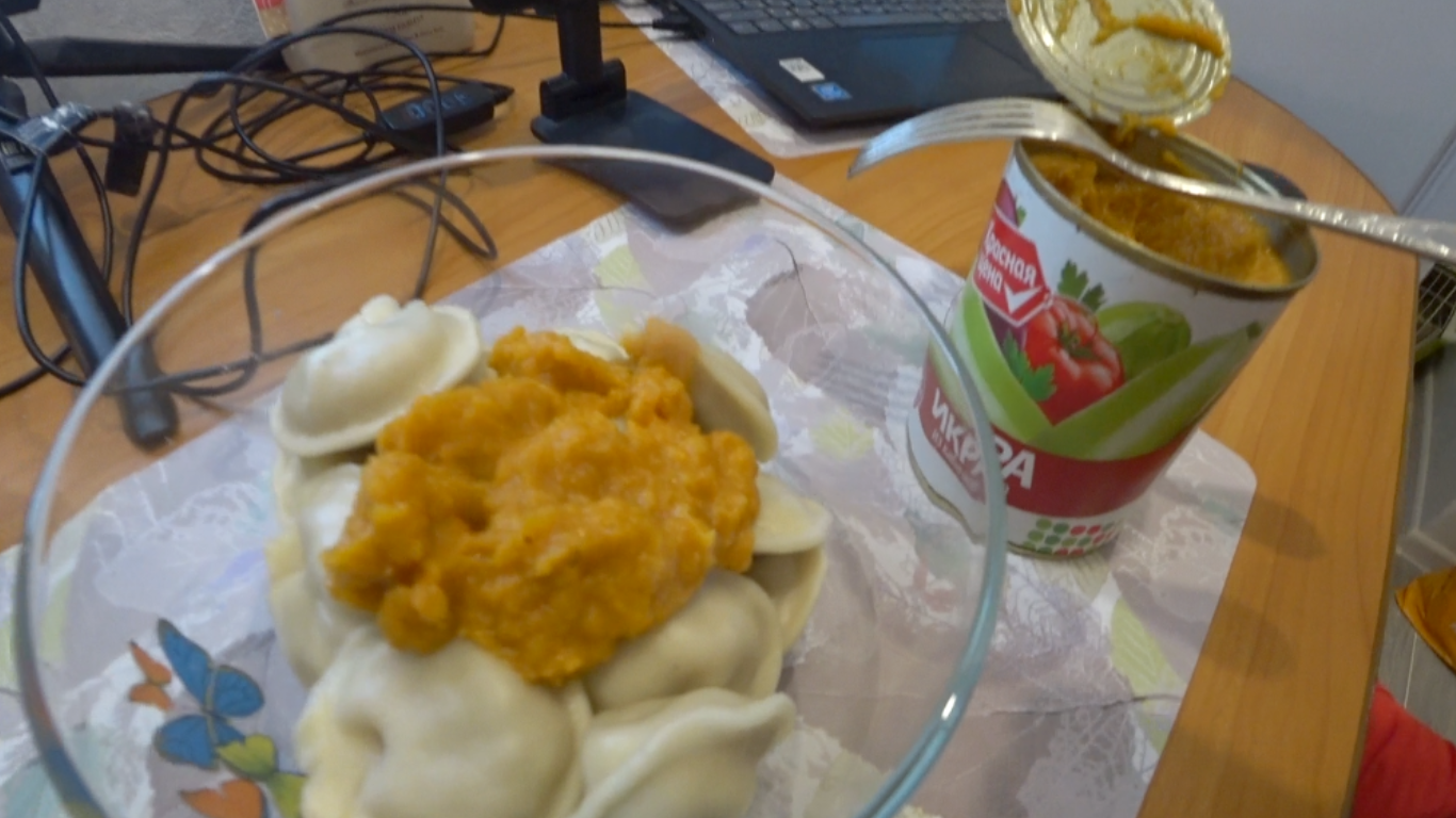 Пельмени с кабачковой икрой #влог #мукбанг #еда