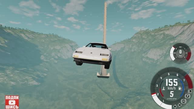 BeamNG Drive Спуск по рампе без тормозов на автомобиле! (Nissan 300ZX) Мод патруль!
