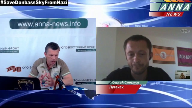 13 июня в информационном центре «Юго-Восточный фронт» состоялось скайп-включение из Луганска с участием активиста армии Юго-Востока Сергея Смирнова. «В Луганске сегодня обстановка сложная. У нас практически отсутствует мобильная и интернет связь. Сегодня в 4.30 утра войска хунты подло нанесли удары тяжелой артиллерией по мирному городу, есть пострадавшие. Разрушены жилые дома, дороги, Люди, которые живут в Луганске, уверены, что объявленную хунтой, фильтрацию не пройдут. Подлость это основной критерий, по которому украинская армия отбирает солдат на военную службу. Разве могут называться офицерами те, кто отдает команды открывать огонь по автобусам с беженцами. Люди объединены одной идеей – защитить свою территорию, свои права. Мы взяли в руки оружие, чтобы защищаться. Ополчение одержит победу. Правда на нашей стороне и мы будем отстаивать её до конца» #SaveDonbassPeople #SaveDonbassSkyFromNazi