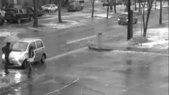 Девушка на Матизе против шлагбаума