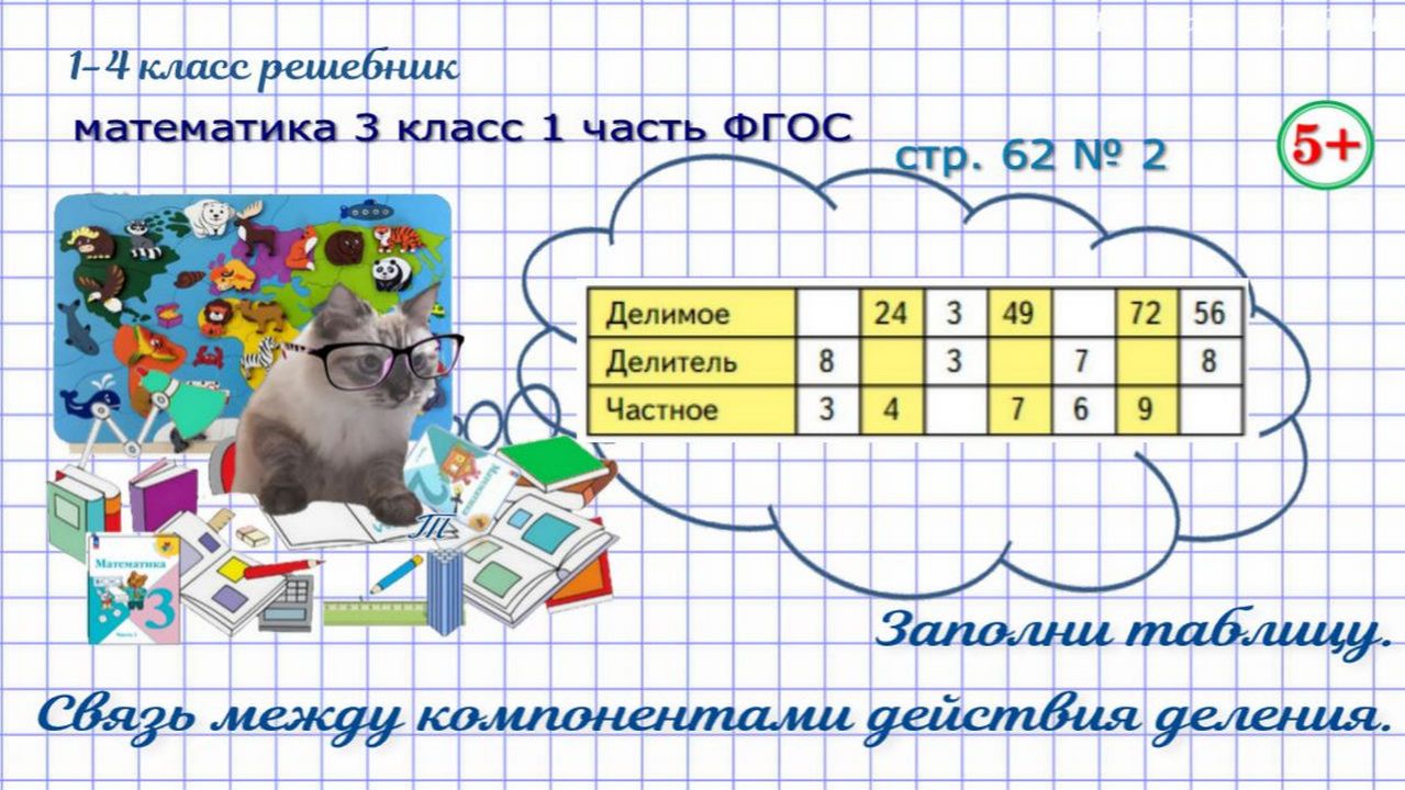 Заполни таблицу. Взаимосвязь между компонентами действия деления. Таблица умножения и деления. Как найти неизвестное делимое? Как найти неизвестный делитель? Страница 62 номер 2 математика 3 класс 1 часть Моро 2023 г. ФГОС гдз Если нашли ошибку, напишите, пожалуйста, в комментариях. Сайт с текстовым содержанием: https://dzen.ru/id/650204661aba9b0ba4b2643e #обучениематематике#математика3класс1частьстр62номер2#заполнитаблицу#взаимосвязьмеждукомпонентамидействияделения#какнайтинеизвестноеделимое#какнайтинеизвестныйделитель#таблицаумноженияиделения#математика3класс1частьФГОС#математика3кл1чФГОС#математика3класс1частьморо2023#обучениедетей#длядетей#решебникматематика3класс#гдзматематика3класс#начальныеклассы#1-4классрешебник+