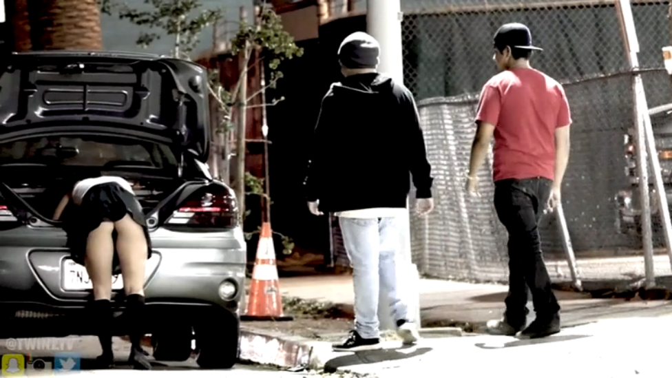Страшный розыгрыш: девушке поддувают юбку на глазах у прохожих, а затем она поворачивается и показывает своё адское лицо...