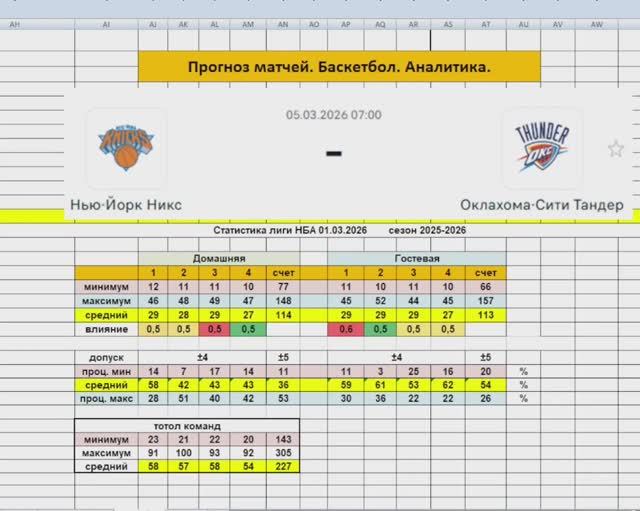 Прогноз матча 05.03.26 Нью Йорк Никс Оклахома Сити Тандер Баскетбол