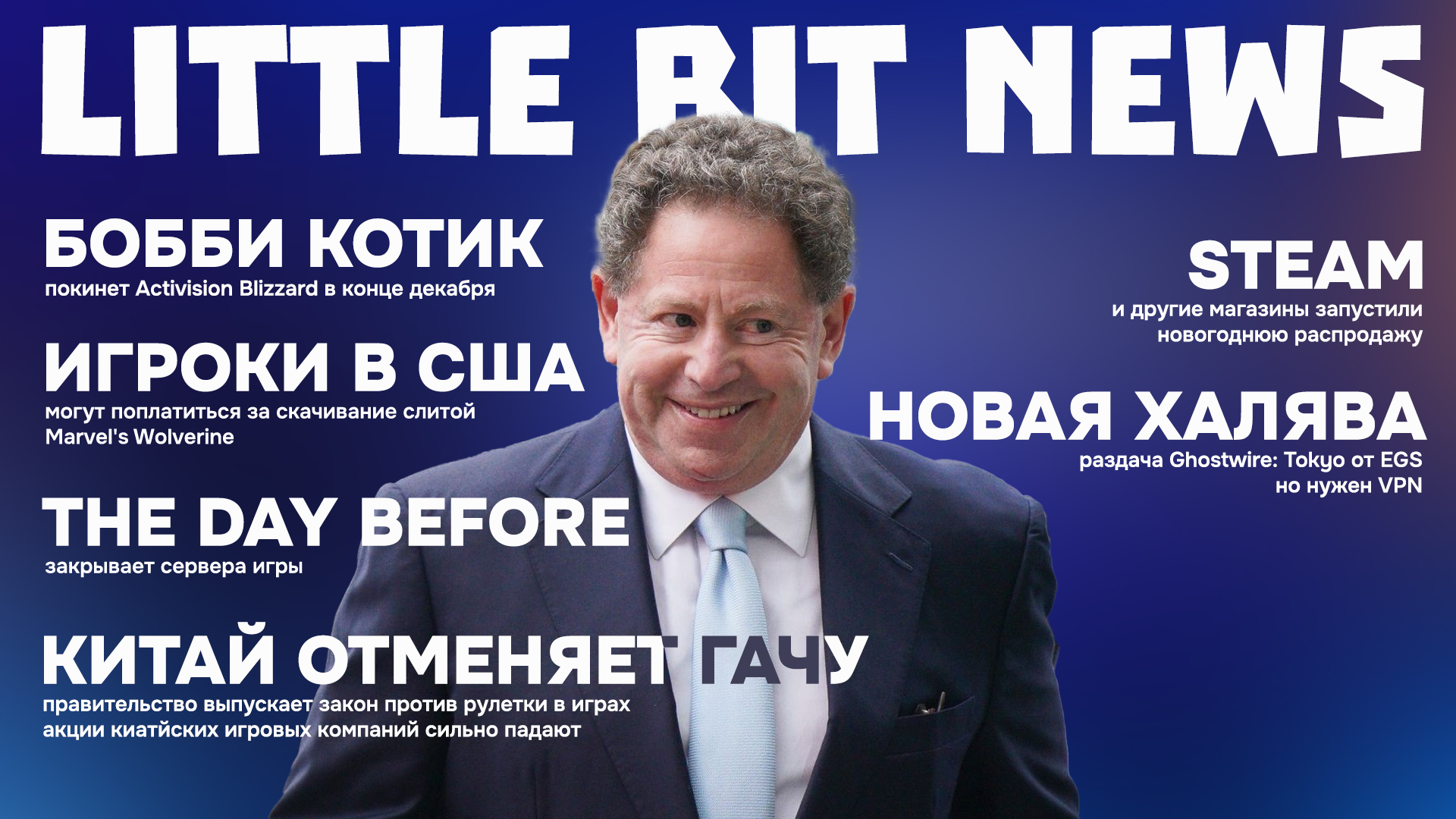 Подборка интересных новостей за прошедшие сутки. Без назойливых шуток, косплея, скандалов, интриг, хайпа и вот этого всего. Только игры и вы... поехали! („• ֊ •„)/ Сегодня в выпуске Little Bit News: Бобби Котика уйдёт на неделе, возможный конец гача-игр, скачал слив Marvel’s Wolverine - покайся! И многое другое ^^ Контакты: Пикабу: https://pikabu.ru/@Little.Bit Boosty: https://boosty.to/littlebitboosty ВК: https://vk.com/little_bit_group Twitch: https://www.twitch.tv/littlebit_twitch Telegram: https://t.me/little_bit_games
