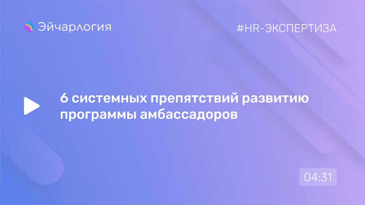 На вебинаре «Развиваем сообщество амбассадоров: что дальше?» Мария Олехнович, к. пс.н, руководитель направления развития корпоративной культуры, рассказала о 6 системных препятствиях, мешающих развитию программ амбассадоров. Запись мероприятия и все материалы доступны по ссылке https://clck.ru/3SPE78