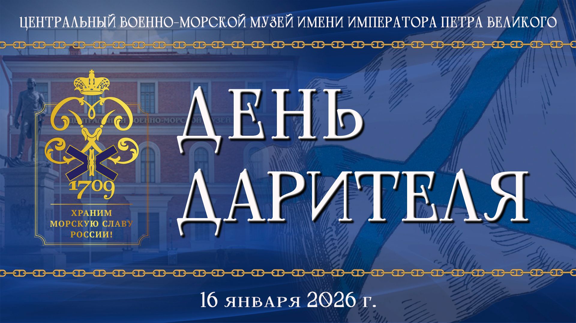 В Центральном военно-морском музее имени императора Петра Великого прошла традиционная церемония чествования дарителей, благодаря которым в 2025 году собрание ЦВММ пополнили более чем 1 200 новых музейных предметов, переданных музею на вечное хранение частными дарителями и организациями. За триста семнадцать лет существования музея, день рождения которого отмечается 24 января, в ЦВММ сформирована богатейшая коллекция, раскрывающая историю Российского военно-морского флота. Собрание музея насчитывает более 755 000 музейных предметов, среди которых модели кораблей, предметы живописи и графики, скульптуры, обмундирования, знамена и флаги, фотографии, документы, награды, предметы флотского быта, чертежи и многое другое. Основная их часть передана музею дарителями, среди которых видные военачальники, родственники героев и организации, создававшие славу гордость отечественного флота, начиная с времен Петра Великого и заканчивая сегодняшним днем. На церемонию Дня дарителя музей собирает у себя в гостях ветеранов флота, представителей организаций, родных и близких простых моряков и военачальников прошлых лет, передавших в дар музею личные вещи моряков Военно-Морского Флота нашей страны. В экспозиции специально развернутой в рамках церемонии временной выставки, представляющей лишь малую часть подаренных предметов, директор ЦВММ имени императора Петра Великого Руслан Нехай поблагодарил дарителей за передачу в фонды музея вещей из личных коллекций, а сами дарители рассказали о раритетах, которые отныне будет вечно храниться в Морском музее.