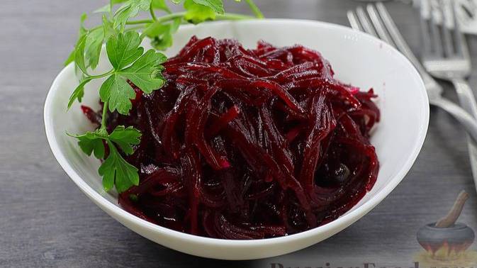 Маринованная свёкла – овощная закуска с ярким кисло-сладким вкусом. Свёкла сперва запекается, затем мелко нарезается и заливается маринадом. Сутки в холодильнике – и маринованная свёкла готова к подаче! #Свёкла #СвёклаМаринованная #ЗакускаИзСвёклы #СвекольнаяЗакуска