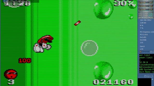 Ares 128 GameGear Native Test 60fps NVENC x64 + Sound Nvidia Drivers 515.43.04 (estamos usando el paquete binario (run package) de la pagina de nvidia)*** Xubuntu 22.04 x64 - Kernel 5.16 generic (ubuntu mainline) - CPUFreq: Performance CPU: Core i3 8350K (Coffelake 14nm) 4.6Ghz + Thermalright Macho Rev.C MEMORY: 12GB DDR4 2400mhz (8x1 - 4x1) Mushkin (dual channel - flex mode: 37.5 gb/s) GPU: Gigabyte Nvidia Geforce GTX 1050 OC (GP107 14nm: 640 Shaders / 40 TMUS / 32 ROPS) Windforce 2GB DDR5 7000Mhz 128Bit (110Gb/s) MAINBOARD: ASUS Z370-P
