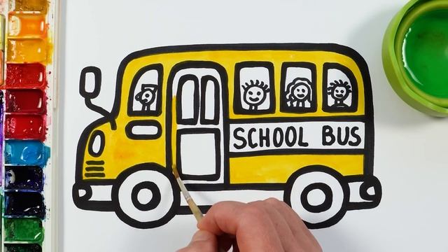 Давайте узнаем, как нарисовать и раскрасить школьный автобус! Простая живопись, рисование, раскраска