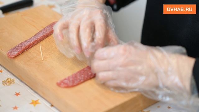 Для создания композиции участникам мастер-класса понадобились напитки, а также копченый сыр, соленая корюшка и колбаса. Всего за 1,5 часа подарок был готов.