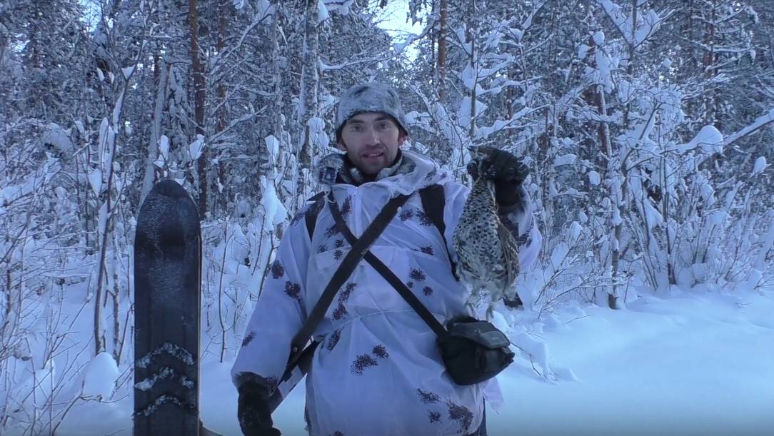 Охота с мелкашкой в зимнее время.На улице -23(свежо),дичь не активна,но все же удалось добыть рябчика.Стрелял метров с 50 через кучу веток(патрон охотник-370э)