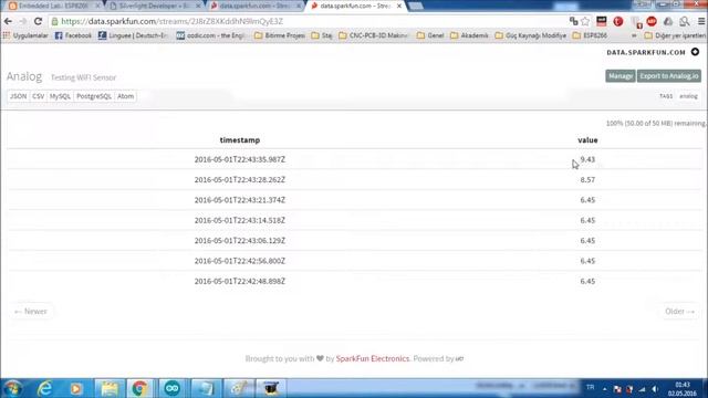 WiFi sensor is sending the data to SpankFun server every 5 seconds. The server is saving them as JSON. The browser on another networks is showing the datas as Google’s chart API . Here the code of ESP8266 https://drive.google.com/file/d/0B7Ckf2-Rx2HcTWVZZnYzWmFVT00/view?usp=sharing