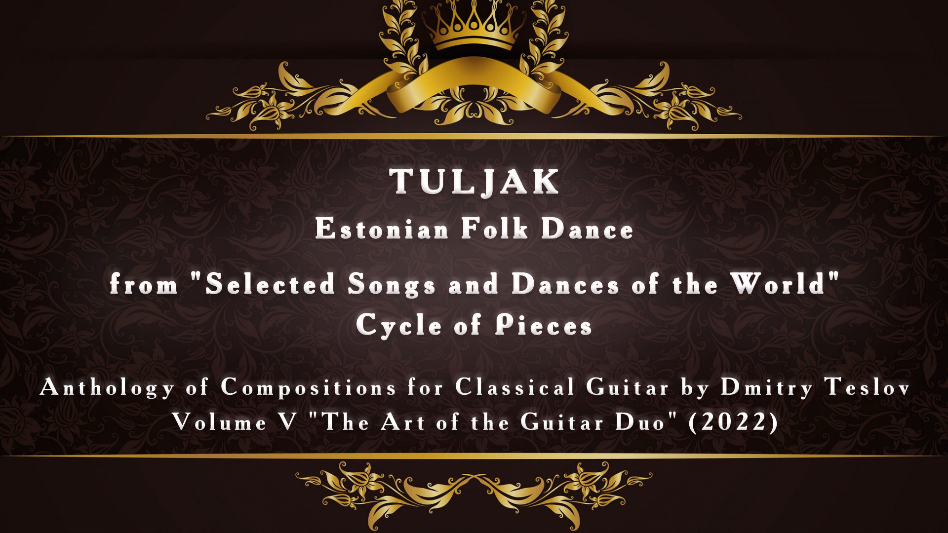 Аранжировка Дмитрия Теслова. Композиция из Нового Нотного издания «Антология сочинений для классической гитары. Том V «Искусство Гитарного Дуэта» (2022 г.). Подробно, скачать: http://teslov-music.ru/teslov-notes_anthology_volume_5.htm В данном издании представлены авторские сочинения (и аранжировки) для дуэта гитар. Адресованы, как профессиональным гитаристам, так и студентам и учащимся музыкальных учебных заведений различного уровня: ВУЗы, СПО, ДШИ-ДМШ. Произведения данного сборника украсят любой концерт, так как они достаточно мелодичны и понятны широкому кругу слушателей. Здесь воспроизведение композиции при помощи программного синтезатора нотного редактора.