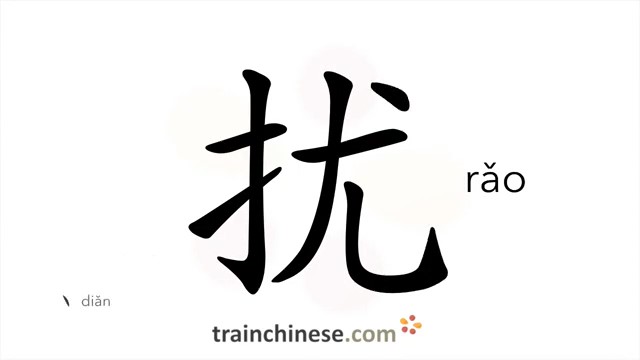扰 (rǎo) to disturb; harass; trouble; trespass on hospitality