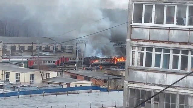 В подмосковном Домодедово 1 апреля 2016 года загорелись несколько вагонов электрички в депо.