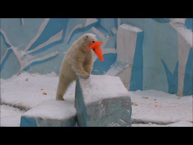 Герда родилась в Москве 20 ноября 2007 года. Её мама Симона, папа Врангель. В Новосибирск переехала 05.08.2008. В 2013 году у Герды и Кая родилась Шилка. В 2015 году она переехала в Японию. В 2015 году родился Ростик. 6 декабря 2018 года он переехал в Китай. В 2018 году родились Норди и Шайна. Сейчас они находятся в нашем зоопарке в закрытой от посетителей хозяйственной зоне. В другие зоопарки их не могут отправить. Сначала была пандемия, сейчас границы закрыты и санкции. Белые медведи Норди и Шайна содержатся в МУП «Новосибирский зоопарк имени Р. А. Шило» с рождения и по настоящее время. Данная пара молодых медведей находится вне экспозиции зоопарка, поэтому посетители не могут их видеть. Передача молодых медведей в другой зоопарк пока не планируется, — ответили на запрос редакции в пресс-центре мэрии Новосибирска. У них есть бассейн, игрушки. Их так же кормят как и раньше. Голодные не бывают. Шайна размером с маму, Норди с папу. Шайна командует Норди. Одиночные животные. Как правило, миролюбивы по отношению друг к другу, но между самцами в брачный период случаются стычки. Взрослые самцы могут нападать на медвежат. Гон с марта по июнь. Продолжительность жизни — максимум 25—30 лет; в неволе рекорд долгожительства — 42 года. Вес очень крупных самцов в некоторых частях ареала 700 и даже 800 кг: есть данные о зверях весом до 1000 кг. Обычно вес меньше. Самки всегда не только меньше, но и значительно легче самцов. Так, самцы в восточной Гренландии в состоянии нормальной упитанности весят 400—450 кг, хорошо упитанные — до 500 кг, самки, даже очень сытые, здесь же редко весят больше 350—380 кг, т. е. их вес составляет около 75% веса самцов. Длина тела на 3-й день после рождения 28—32 см, средний вес — около 755 г (650—840 г). На 26-й день длина тела увеличивается незначительно — до 35—38 см, а вес возрастает до 1125—1275 г. В возрасте 60 дней самцы весят около 7 кг, самки — около 6 кг при длине тела у первых 58—60 см, у вторых 54—58 см. В возрасте 4 месяца медвежата достигают веса 22—23 кг, в 6-месячном возрасте при длине около 110 см — 40—43 кг, в 8-месячном — 58—62 кг. Длина тела в возрасте с 6 до 9 месяцев нарастает по 6—7 см в месяц. Во время зимнего сна рост почти прекращается. В зоопарке медведей кормят утром морской рыбой, хлеб с рыбьим жиром внутри, морковь, яблоки, морская капуста, яйцо дают сырое. Медвежат подкармливают молоком из соски. На ужин мясо (говядина, конина, куры или индейка). Летом и осенью арбузы, дыни, ранетки, кабачки, тыквы, огурцы. Когда показательное кормление летом бросают живую рыбу. Медвежата с медведицей находятся до 2-х лет. 16 декабря 2022 года Герда родила 2-х медвежат. И это две девочки! Имена дали 25 июня. Медвежат зовут Стрелка и Белка. Обзор вольеров белых медведей https://www.youtube.com/watch?v=mAt_b7JD0B4&list=PLGvf0V-rAHxkpGKJaWIZIUxRKgKiqV3xZ&index=17&t=0s