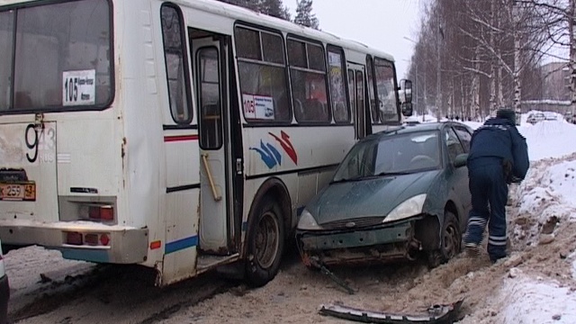 Скользкие колеи вновь стали причиной аварии. На этот раз на улице Ленина, с участием пассажирского транспорта