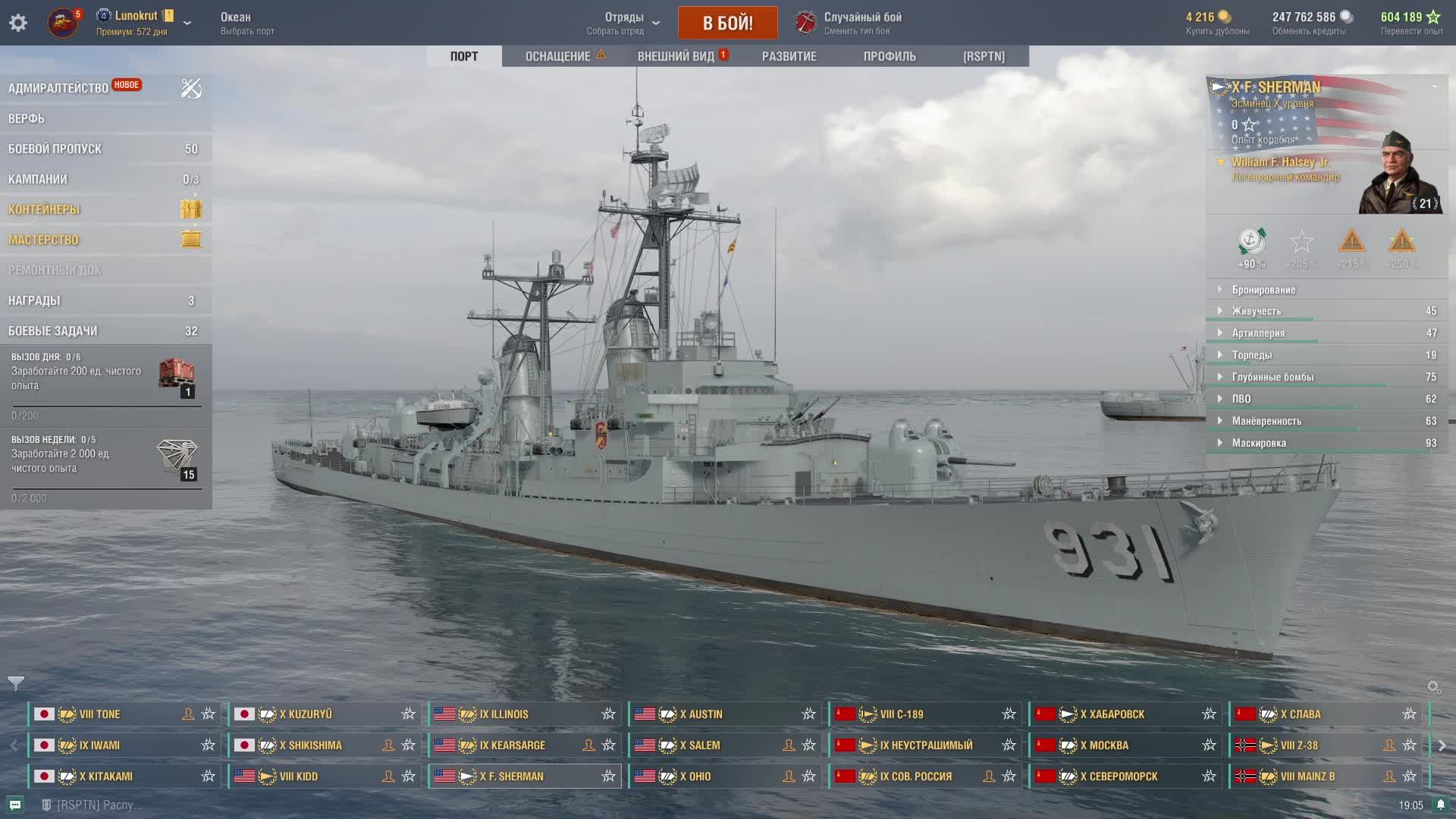 Мир кораблей - F. SHERMAN Эсминец за уголь) Скорострел как я)