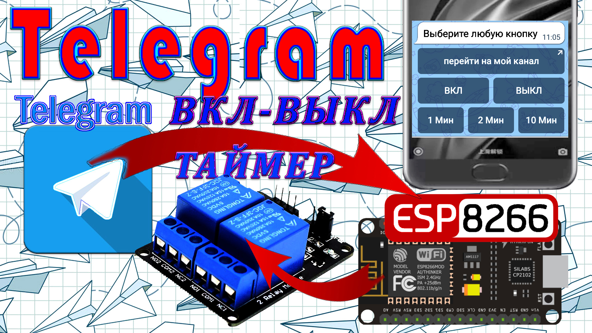 Телеграм бот кнопки Как сделать кнопку в телеграм Вы узнаете как добавить кнопку в телеграм канал. Сделаем в телеграм боте кнопки. Это будут кнопки на включения и выключение реле или лампы. Скетчи используемые в видео можно скачать на сайте "Ардуино для начинающих". http://arduino-kid.ru/blog/telegram-bot-knopki-kak-sdelat-knopku-v-telegram Создадим кнопку в телеграм на переход на сайт, а ещё сделаем таймер. Включать кнопками в телеграм намного интереснее.