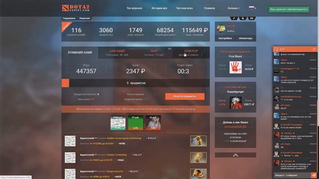 Так же смотри в комментарии, там ништяки и халявные вещи из доты 2 для моих подписчиковСегодня вы увидите что будет если поставить вещи на 500р. Поднимем или сольём все в ноль?!